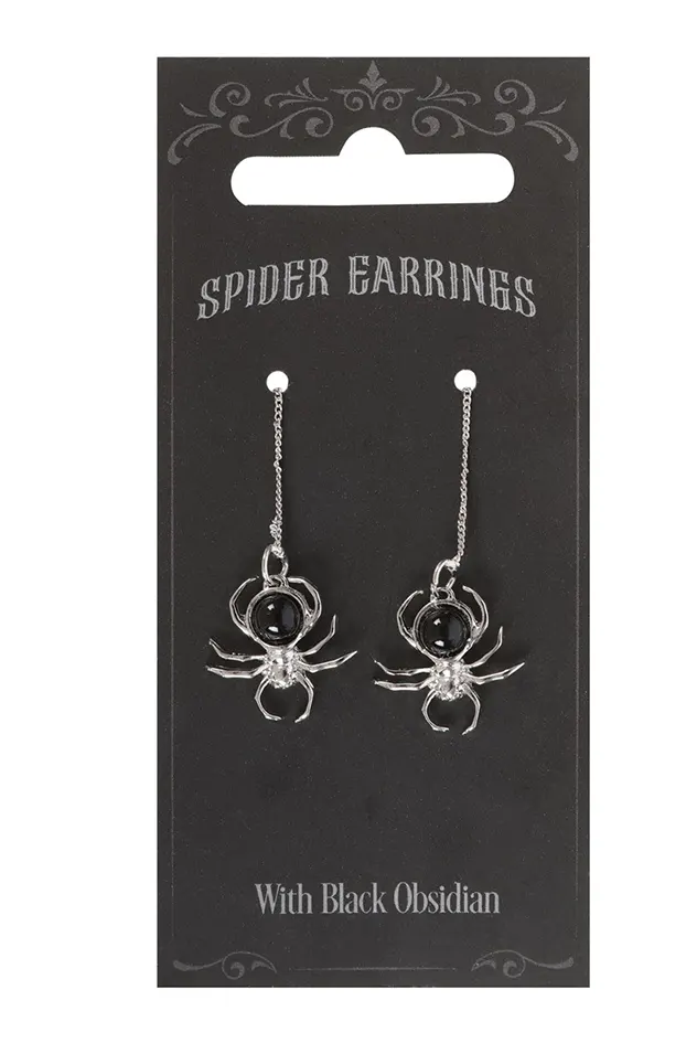 Add a little spooky to your style with these spider earrings crafted from stainless steel and featuring black obsidian details. Appearing as if dangling from a thin thread of web, these earrings are equal parts elegant and eerie.