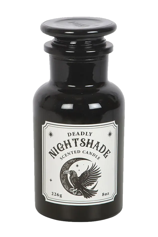 Add some mystery to any space with this apothecary-inspired deadly nightshade scented candle. Featuring a gothic, mystic raven design, this candle is perfect for those who love the dark and enchanting.