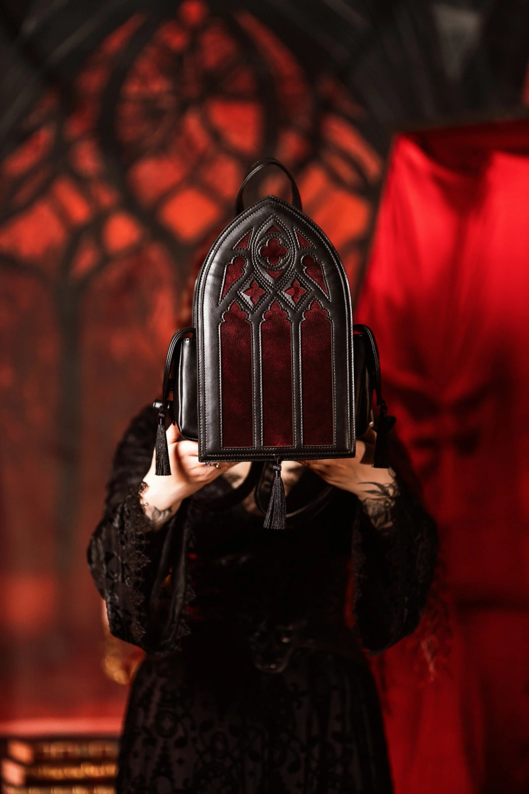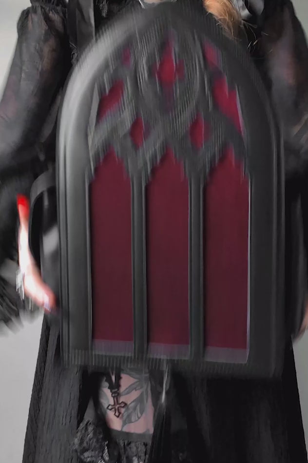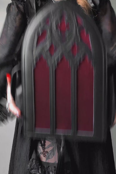 🦇 A gothic cathedral backpack, perfect for vampire or romantic styles.